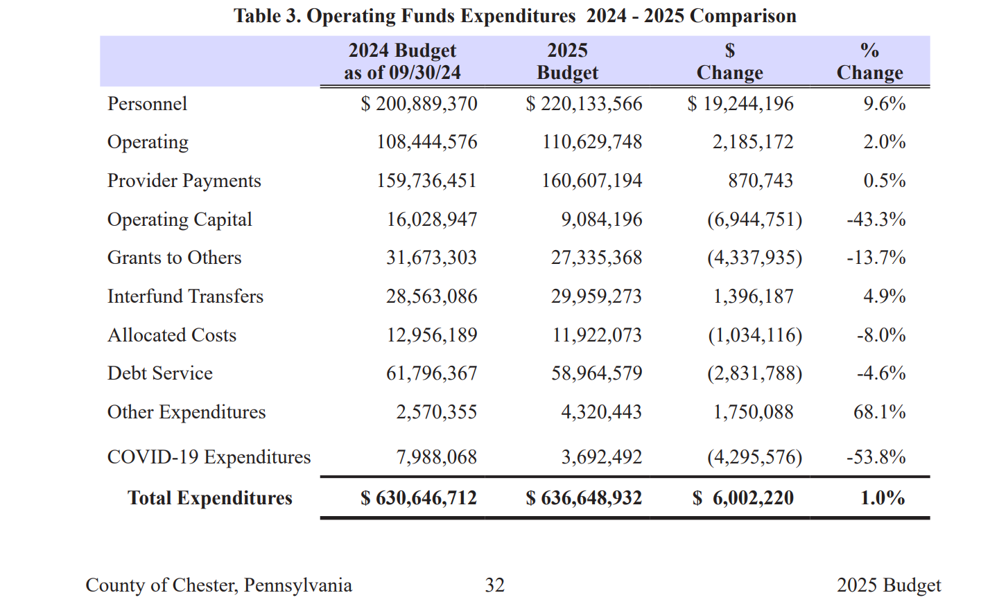 Chester County’s structure includes a myriad of elected officials who are paid including three County Commissioners, Coroner, Treasurer, Controller, Sheriff, District Attorney, Recorder of Deeds, Register of Wills, Clerk of Courts, and Prothonotary. In addition to the elected positions, there is the “Executive Team” consisting of the Chief Financial Officer, CEO, COO, and now CXO. Below the executive team, there are a significant number of department heads and a total of 2,600 employees.