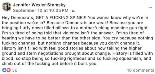 Also in Montgomery County, Ambler Tax Collector, Jennifer Wexley Stomsky posted a diatribe on social media following Kirk’s death.