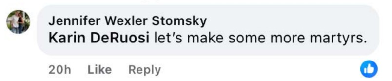 She subsequently responded to comments on the post with a statement, “let’s make some more martyrs.”