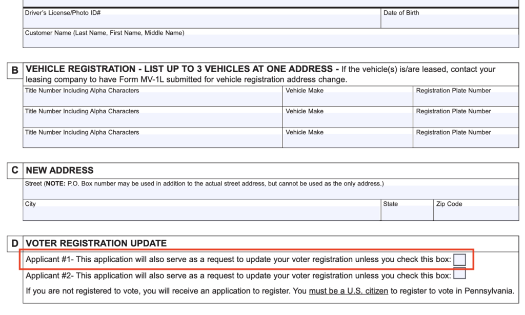 PennDOT says vehicle registration can’t change your voter registration. Its own form says otherwise.