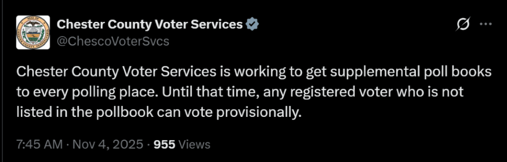 — Chester County Voter Services (@ChescoVoterSvcs) November 4, 2025