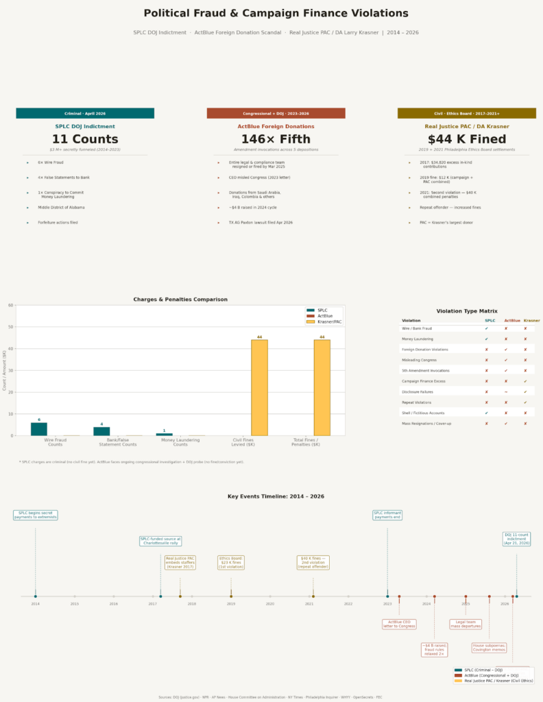 The same caution applies to ActBlue and the Krasner-related coverage. The published allegations raise serious questions about compliance, transparency and the possibility that donors or taxpayers believed they were supporting one purpose while money was routed through another set of hands or entities. But the existence of a nonprofit or PAC network, standing alone, does not prove criminal wrongdoing. What matters is whether there was falsehood, concealment, coordination beyond the law, or a pattern of transactions that intentionally hid the real source and destination of money.